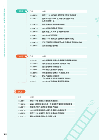 125 113%u5e74%u5ea6%u6843%u5712%u6d88%u9632%u5e74%u58312024 Annual Report of Taoyuan Fire Department%u65e5%u671f %u5167%u5bb9113/04/02 %u8fa6%u7406%u300c113 %u5e74%u7d21%u7e54%u5370%u67d3%u6574%u7406%u696d%u6d88%u9632%u5b89%u5168%u5ea7%u8ac7%u6703%u300d113/04/13 %u570b%u969b%u7345%u5b50%u6703 300B5 %u5340%u6350%u8d08%u707d%u60c5%u52d8%u67e5%u8eca 1 %u8f1b%u53ca%u6551%u707d%u5668%u6750 1 %u6279113/04/15 %u9ad8%u7d1a%u6551%u8b77%u6280%u8853%u54e1%u8a13%u7df4%u958b%u8a13%u5178%u79ae113/04/15 113 %u5e74%u8eca%u798d%u6551%u63f4%u6559%u5b98%u73ed%u8a13%u7df4113/04/19 %u7fa9%u52c7%u6d88%u9632%u4eba%u54e1 BLS %u57fa%u672c%u6551%u547d%u8853%u8a13%u7df4113/04/22 113 %u5e74%u5c71%u57df%u6280%u8853%u8a13%u7df4113/04/23 %u8fa6%u7406%u300c113 %u5e74%u6551%u707d%u5b89%u5168%u63a8%u52d5%u5e79%u90e8%u6559%u80b2%u8a13%u7df4%u300d113/04/23 %u4ee3%u8a13%u5167%u653f%u90e8%u6d88%u9632%u7f72%u7279%u8003%u73ed%u4e2d%u7d1a%u6551%u8b77%u6280%u8853%u54e1%u8a13%u7df4%u7d50%u8a13%u5178113/04/28 %u706b%u628a%u7bc0%u671f%u9593%u99d0%u5b88%u57f7%u52e4%u65e5%u671f %u5167%u5bb9113/05/01 %u672c%u5e02%u7279%u7a2e%u641c%u6551%u968a%u57ce%u5e02%u6551%u63f4%u641c%u7d22%u6551%u63f4%u7d44%u96c6%u4e2d%u8a13%u7df4113/05/02 %u9054%u6210%u6148%u5584%u57fa%u91d1%u6703%u6350%u8d08%u672c%u5c40%u6551%u8b77%u8eca 1 %u8f1b113/05/05 %u7fa9%u6d88%u57fa%u790e%u5e79%u90e8%u8a13%u7df4%u8b1b%u7fd2%u73ed113/05/06 113 %u5e74%u5316%u707d%u6436%u6551%u8a13%u7df4%u57fa%u790e%u73ed113/05/08 %u672c%u5c40%u7372%u9812%u7f8e%u570b%u667a%u6167 20 %u5927%u734e%u5275%u65b0%u5c08%u6848113/05/14 %u914d%u5408%u5167%u653f%u90e8%u6d88%u9632%u7f72%u8fa6%u7406%u300c113 %u5e74%u6551%u707d%u5b89%u5168%u63a8%u52d5%u5e79%u90e8%u6559%u80b2%u8a13%u7df4%u300d113/05/17 113 %u5e74%u5c71%u57df%u6551%u63f4%u6a5f%u5236%u5c08%u5bb6%u7814%u5546%u5ea7%u8ac7%u6703%u56db%u6708%u4e94%u6708%u65e5%u671f %u5167%u5bb9113/06/04 %u8fa6%u7406%u300c113 %u5e74%u6551%u707d%u7528%u651d%u5f71%u6a5f%u6559%u80b2%u8a13%u7df4%u300d113/06/08 2024 %u5e74%u9f8d%u6f6d%u6b78%u9109%u6587%u5316%u7bc0 - %u5e02%u9577%u76c3%u9f8d%u821f%u8cfd%u69ae%u7372%u6a5f%u95dc%u7d44%u4e9e%u8ecd113/06/17 %u6843%u5712%u5e02%u6d88%u9632%u4eba%u54e1%u5065%u5eb7%u6aa2%u67e5%u88dc%u52a9%u518d%u52a0%u78bc113/06/18 113 %u5e74%u5ea6%u8eca%u8f1b%u88dd%u5099%u5668%u6750%u64cd%u4f5c%u66a8%u4fdd%u990a%u5c0f%u968a%u9577%u8a13%u7df4%u73ed113/06/20 %u8fa6%u7406%u300c113 %u5e74%u6551%u63f4%u4eba%u54e1%u5b9a%u4f4d%u8a2d%u5099%u7cfb%u7d71%u6559%u80b2%u8a13%u7df4%u300d113/06/23 %u89c0%u81ea%u5728%u6148%u5584%u6703%u6350%u8d08%u672c%u5c40%u6551%u8b77%u8eca 1 %u8f1b%u516d%u6708