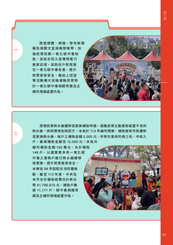 %u53d7%u7406%u6c11%u773e%u71b1%u6c34%u5668%u9077%u79fb%u6216%u66f4%u63db%u88dc%u52a9%u7533%u8acb%uff0c%u9f13%u52f5%u6c11%u773e%u4e3b%u52d5%u66f4%u65b0%u88dd%u7f6e%u4e0d%u826f%u7684%u71b1%u6c34%u5668%uff0c%u6392%u9664%u74b0%u5883%u5371%u96aa%u56e0%u5b50%uff0c%u672c%u5c40%u65bc 113 %u5e74%u7de8%u5217%u9810%u7b97%uff0c%u88dc%u52a9%u5c45%u5bb6%u5e02%u6c11%u9077%u79fb%u6216%u66f4%u63db%u71b1%u6c34%u5668%uff0c%u6bcf%u6236%u4e4b%u88dc%u52a9%u91d1%u984d 3,000 %u5143%uff0c%u91dd%u5c0d%u793e%u6703%u5c40%u5217%u518a%u4e4b%u4f4e%u3001%u4e2d%u6536%u5165%u6236%uff0c%u6700%u9ad8%u88dc%u52a9%u91d1%u984d%u81f3 12,000 %u5143%uff0c%u672c%u5c40%u5171%u7de8%u5217%u88dc%u52a9%u91d1%u984d 100 %u842c %u5143%uff0c %u5171 %u8a08 %u88dc %u52a9148 %u6236%uff0c%u4ee5%u5609%u60e0%u66f4%u591a%u6709%u4e00%u6c27%u5316%u78b3%u4e2d%u6bd2%u4e4b%u6f5b%u52e2%u6236%u9032%u884c%u71b1%u6c34%u5668%u9077%u79fb%u6216%u66f4%u63db%uff0c%u63d0%u5347%u6c11%u773e%u5c45%u5bb6%u5b89%u5168%u3002%u672c%u6848%u81ea 98 %u5e74%u8d77%u914d%u5408%u6d88%u9632%u7f72%u63a8%u52d5%uff0c%u622a%u81f3 113 %u5e74%u5ea6%uff0c%u4e2d%u592e%u53ca%u672c%u5e02%u5408%u8a08%u88dc%u52a9%u7d93%u8cbb%u5171%u8a08%u65b0%u53f0%u5e63 41,799,670 %u5143%uff0c%u88dc%u52a9%u6236%u6578%u9054 11,171 %u6236%u3002%u78b3%u4e2d%u6bd2%u76f8%u95dc%u5e38%u8b58%u53ca%u6b63%u78ba%u7684%u73fe%u5834%u8655%u7f6e%u4f5c%u70ba%u3002%u900f%u904e%u5a92%u9ad4%u3001%u7db2%u8def%u3001%u767c%u5e03%u65b0%u805e%u7a3f%u53ca%u76f8%u95dc%u6587%u5ba3%u6d77%u5831%u767c%u5831%u7b49%uff0c%u52a0%u5f37%u6c11%u773e%u9632%u7bc4%u4e00%u6c27%u5316%u78b3%u4e2d%u6bd2%u77e5%u80fd%uff0c%u4e26%u7d50%u5408%u9632%u706b%u5ba3%u5c0e%u968a%u9032%u884c%u5c45%u5bb6%u8a2a%u8996%uff0c%u5354%u52a9%u4f4f%u6236%u767c%u73fe%u6f5b%u5728%u4e00%u6c27%u5316%u78b3%u4e2d%u6bd2%u5371%u5bb3%uff0c%u63d0%u5347%u6c11%u773e%u5c45%u5bb6%u5b89%u5168%uff0c%u85c9%u7531%u4e0a%u8ff0%u5ba3%u5c0e%u6d3b%u52d5%u64f4%u5927%u52a0%u5f37%u704c%u8f38%u6c11%u773e%u5c0d%u65bc%u4e00%u6c27%u5316%u78b3%u4e2d%u6bd2%u76f8%u95dc%u5e38%u8b58%u53ca%u6b63%u78ba%u7684%u73fe%u5834%u8655%u7f6e%u4f5c%u70ba%u3002%u4e00%u4e8c%u7b2c%u4e09%u7ae030