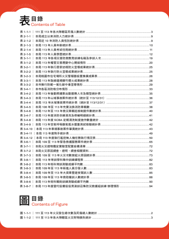 %u8868%u76ee%u9304%u5716%u76ee%u9304Contents of TableContents of Figure%u5716 1-1-1 %uff5c 111 %u81f3 113 %u5e74%u706b%u707d%u767c%u751f%u7e3d%u6b21%u6578%u53ca%u6b7b%u50b7%u7e3d%u4eba%u6578%u7d71%u8a08 ...........................................................2%u5716 1-1-2 %uff5c 111 %u81f3 113 %u5e74%u5404%u5927%u968a%u8f44%u5340%u706b%u707d%u8ca1%u7269%u640d%u5931%u7d71%u8a08 .................................................................3%u8868 1-1-1 %uff5c 111 %u81f3 113 %u5e74%u5404%u5927%u968a%u8f44%u5340%u6b7b%u50b7%u4eba%u6578%u7d71%u8a08 ........................................................................3%u8868 2-1-1 %uff5c %u672c%u5c40%u6210%u7acb%u4ee5%u4f86%u6d88%u9632%u4eba%u529b%u7d71%u8a08%u8868 .....................................................................................9%u8868 2-1-2 %uff5c %u672c%u5c40%u8fd1 10 %u5e74%u6d88%u9632%u4eba%u54e1%u6027%u5225%u7d71%u8a08%u8868 ...............................................................................9%u8868 2-1-3 %uff5c %u672c%u5c40 113 %u5e74%u4eba%u54e1%u5e74%u9f61%u7d71%u8a08%u8868 ......................................................................................10%u8868 2-1-4 %uff5c %u672c%u5c40 113 %u5e74%u4eba%u54e1%u8003%u8a66%u4efb%u7528%u7d71%u8a08%u8868 ............................................................................... 11%u8868 2-1-5 %uff5c %u672c%u5c40 113 %u5e74%u4eba%u54e1%u5b78%u6b77%u7d71%u8a08%u8868 ......................................................................................12%u8868 3-1-1 %uff5c %u672c%u5c40 113 %u5e74%u5404%u9805%u707d%u5bb3%u9632%u6551%u6559%u80b2%u8a13%u7df4%u540d%u7a31%u53ca%u53c3%u8a13%u4eba%u6b21 .....................................................19%u8868 3-1-2 %uff5c %u672c%u5c40 113 %u5e74%u6b0a%u7ba1%u707d%u5bb3%u61c9%u8b8a%u4e2d%u5fc3%u958b%u8a2d%u60c5%u5f62 .....................................................................20%u8868 3-2-1 %uff5c %u672c%u5c40 113 %u5e74%u57f7%u884c%u5c45%u5bb6%u8a2a%u8996%u9632%u706b%u5ba3%u5c0e%u6210%u679c%u7d71%u8a08%u8868 ............................................................25%u8868 3-2-2 %uff5c %u672c%u5c40 113 %u5e74%u57f7%u884c%u9632%u706b%u5ba3%u5c0e%u6210%u679c%u7d71%u8a08%u8868 .........................................................................25%u8868 3-2-3 %uff5c %u672c%u5c40%u6843%u5712%u5e02%u4f4f%u5b85%u5834%u6240%u706b%u707d%u8b66%u5831%u5668%u8a2d%u7f6e%u63a8%u5ee3%u6210%u679c%u8868 .........................................................26%u8868 3-3-1 %uff5c %u672c%u5c40 113 %u5e74%u53d6%u7de0%u9055%u898f%u7206%u7af9%u7159%u706b%u6210%u679c%u7d71%u8a08%u8868 ..................................................................28%u8868 3-3-2 %uff5c %u672c%u5e02%u63a8%u884c%u9632%u7bc4%u4e00%u6c27%u5316%u78b3%u4e2d%u6bd2%u5ba3%u5c0e%u60c5%u5f62 .........................................................................29%u8868 3-4-1 %uff5c %u672c%u5e02%u5404%u5340%u6d88%u9632%u6813%u5206%u5e03%u60c5%u5f62 .........................................................................................33%u8868 3-4-2 %uff5c %u672c%u5c40 113 %u5e74%u5f8c%u52e4%u7167%u8b77%u8eca%u51fa%u52e4%u670d%u52d9%u4eba%u6b21%u53ca%u985e%u578b%u7d71%u8a08%u8868 .....................................................35%u8868 3-4-3 %uff5c %u672c%u5c40 113 %u5e74%u5c71%u57df%u4e8b%u6545%u6848%u4ef6%u7d71%u8a08%u8868%uff08%u7d71%u8a08%u81f3 113/12/31%uff09 ...............................................36%u8868 3-4-4 %uff5c %u672c%u5c40 113 %u5e74%u6c34%u57df%u4e8b%u6545%u6848%u4ef6%u7d71%u8a08%u8868%uff08%u7d71%u8a08%u81f3 113/12/31%uff09 ...............................................37%u8868 3-4-5 %uff5c %u672c%u5c40 106 %u5e74%u81f3 113 %u5e74%u5145%u5be6%u6c70%u63db%u6d88%u9632%u8eca%u8f1b%u6578 .................................................................38%u8868 3-4-6 %uff5c %u672c%u5c40 112 %u5e74%u81f3 113 %u5e74%u6551%u707d%u8eca%u8f1b%u5de1%u6aa2%u5236%u5ea6%u4ef6%u6578%u7d71%u8a08%u8868 .....................................................40%u8868 3-4-7 %uff5c %u672c%u5c40 113 %u5e74%u5ea6%u6d88%u9632%u8863%u8932%u6e05%u6d17%u53ca%u4fee%u88dc%u660e%u7d30%u7d71%u8a08%u8868 ............................................................41%u8868 3-4-8 %uff5c %u672c%u5c40 113 %u5e74%u5ea6 SCBA %u5b9a%u671f%u6e05%u6d17%u5236%u5ea6%u65bd%u4f5c%u6578%u91cf%u7d71%u8a08 .......................................................42%u8868 3-4-9 %uff5c %u672c%u5c40 113 %u5e74%u7a7a%u6c23%u547c%u5438%u5668%u6c23%u74f6%u6c34%u58d3%u91cd%u6e2c%u8a66%u6aa2%u9a57%u7d71%u8a08%u8868 .....................................................42%u8868 3-4-10 %uff5c%u672c%u5c40 113 %u5e74%u8eca%u798d%u4e8b%u6545%u6848%u4ef6%u8087%u8cac%u7d71%u8a08%u8868 ........................................................................43%u8868 3-4-11 %uff5c%u672c%u5c40 113 %u5e74%u5ea6%u98db%u624b%u7d71%u8a08%u8868 ........................................................................................49%u8868 3-4-12 %uff5c%u672c%u5c40 113 %u5e74%u5ea6%u57f7%u884c%u9059%u63a7%u7121%u4eba%u6a5f%u4efb%u52d9%u57f7%u884c%u60c5%u6cc1%u8868 ...........................................................50%u8868 3-6-1 %uff5c %u672c%u5c40 109 %u81f3 113 %u5e74%u7dca%u6025%u6551%u8b77%u670d%u52d9%u6848%u4ef6%u7d71%u8a08%u8868 ..............................................................65%u8868 3-7-1 %uff5c %u672c%u5c40%u706b%u707d%u8b49%u7269%u9451%u5b9a%u5be6%u9a57%u5ba4%u914d%u7f6e%u8a2d%u5099%u6e05%u55ae ......................................................................72%u8868 3-7-2 %uff5c %u672c%u5c40%u706b%u707d%u539f%u56e0%u8abf%u67e5%u3001%u8b49%u660e%u3001%u8abf%u67e5%u76f8%u95dc%u8cc7%u6599 ...................................................................72%u8868 3-7-3 %uff5c %u672c%u5c40 109 %u81f3 113 %u5e74%u706b%u707d%u6b21%u6578%u6309%u8d77%u706b%u539f%u56e0%u7d71%u8a08%u8868 ...........................................................73%u8868 3-8-1 %uff5c %u672c%u5c40 113 %u5e74%u5e38%u8a13%u5b78%u79d1%u96c6%u4e2d%u8a13%u7df4