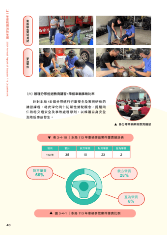 113%u5e74%u5ea6%u6843%u5712%u6d88%u9632%u5e74%u58312024 Annual Report of Taoyuan Fire Department43%u25b6 %u8868 3-4-10 %uff5c%u672c%u5c40 113 %u5e74%u8eca%u798d%u4e8b%u6545%u6848%u4ef6%u8087%u8cac%u7d71%u8a08%u8868%u25b6 %u5716 3-4-1 %uff5c%u672c%u5c40 113 %u5e74%u8eca%u798d%u4e8b%u6545%u6848%u4ef6%u8087%u8cac%u6bd4%u4f8b%u9805%u76ee %u7d2f%u8a08 %u6211%u65b9%u8087%u8cac %u5c0d%u65b9%u8087%u8cac %u4e92%u70ba%u8087%u8cac113 %u5e74 35 10 23 2%u5c0d%u65b9%u8087%u8cac66%%u6211%u65b9%u8087%u8cac28%%u4e92%u70ba%u8087%u8cac6%%uff08%u516d%uff09%u8fa6%u7406%u5206%u968a%u5de1%u8ff4%u6559%u80b2%u8b1b%u7fd2%uff0c%u964d%u4f4e%u8eca%u8f1b%u4e8b%u6545%u6bd4%u7387%u91dd%u5c0d%u672c%u5c40 45 %u500b%u5206%u968a%u9032%u884c%u884c%u8eca%u5b89%u5168%u53ca%u6848%u4f8b%u7814%u6790%u7684%u8b1b%u7fd2%u8ab2%u7a0b%uff0c%u85c9%u6b64%u6df1%u5316%u540c%u4ec1%u9632%u79a6%u6027%u99d5%u99db%u89c0%u5ff5%uff0c%u63d0%u9192%u540c%u4ec1%u719f%u7a14%u4ea4%u901a%u5b89%u5168%u53ca%u4e8b%u6545%u8655%u7406%u539f%u5247%uff0c%u4ee5%u7dad%u8b77%u81ea%u8eab%u5b89%u5168%u53ca%u964d%u4f4e%u4e8b%u6545%u767c%u751f%u3002%u6c23%u74f6%u9a57%u6536%u5be6%u5730%u6e2c%u8a66%u66f4%u63db%u96f6%u4ef6%u25bc %u5404%u5206%u968a%u8eca%u798d%u6848%u4f8b%u6559%u80b2%u8b1b%u7fd2
