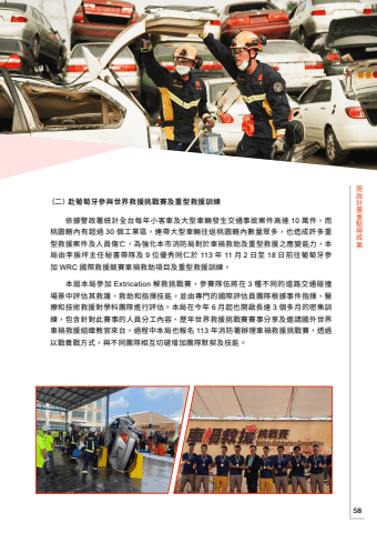 58%u65bd%u653f%u8a08%u756b%u91cd%u9ede%u8207%u6210%u679c%uff08%u4e8c%uff09%u8d74%u8461%u8404%u7259%u53c3%u8207%u4e16%u754c%u6551%u63f4%u6311%u6230%u8cfd%u53ca%u91cd%u578b%u6551%u63f4%u8a13%u7df4%u4f9d%u64da%u8b66%u653f%u7f72%u7d71%u8a08%u5168%u53f0%u6bcf%u5e74%u5c0f%u5ba2%u8eca%u53ca%u5927%u578b%u8eca%u8f1b%u767c%u751f%u4ea4%u901a%u4e8b%u6545%u6848%u4ef6%u9ad8%u9054 10 %u842c%u4ef6%uff0c%u800c%u6843%u5712%u8f44%u5167%u6709%u8d85%u904e 30 %u500b%u5de5%u696d%u5340%uff0c%u9023%u5e36%u5927%u578b%u8eca%u8f1b%u5f80%u8fd4%u6843%u5712%u8f44%u5167%u6578%u91cf%u773e%u591a%uff0c%u4e5f%u9020%u6210%u8a31%u591a%u91cd%u578b%u6551%u63f4%u6848%u4ef6%u53ca%u4eba%u54e1%u50b7%u4ea1%uff0c%u70ba%u5f37%u5316%u672c%u5e02%u6d88%u9632%u5c40%u5c0d%u65bc%u8eca%u798d%u6551%u52a9%u53ca%u91cd%u578b%u6551%u63f4%u4e4b%u61c9%u8b8a%u80fd%u529b%uff0c%u672c%u5c40%u7531%u674e%u632f%u576a%u4e3b%u4efb%u79d8%u66f8%u5e36%u968a%u53ca 9 %u4f4d%u512a%u79c0%u540c%u4ec1%u65bc 113 %u5e74 11 %u6708 2 %u65e5%u81f3 18 %u65e5%u524d%u5f80%u8461%u8404%u7259%u53c3%u52a0 WRC %u570b%u969b%u6551%u63f4%u7af6%u8cfd%u8eca%u798d%u6551%u52a9%u9805%u76ee%u53ca%u91cd%u578b%u6551%u63f4%u8a13%u7df4%u3002%u672c%u5c46%u672c%u5c40%u53c3%u52a0 Extrication %u89e3%u6551%u6311%u6230%u8cfd%uff0c%u53c3%u8cfd%u968a%u4f0d%u5c07%u5728 3 %u7a2e%u4e0d%u540c%u7684%u9053%u8def%u4ea4%u901a%u78b0%u649e%u5834%u666f%u4e2d%u8a55%u4f30%u5176%u6551%u8b77%u3001%u6551%u52a9%u548c%u6307%u63ee%u6280%u80fd%uff0c%u4e26%u7531%u5c08%u9580%u7684%u570b%u969b%u8a55%u4f30%u54e1%u5718%u968a%u6839%u64da%u4e8b%u4ef6%u6307%u63ee%u3001%u91ab%u7642%u548c%u6280%u8853%u6551%u63f4%u5c0d%u5b78%u79d1%u5718%u968a%u9032%u884c%u8a55%u4f30%u3002%u672c%u5c40%u5728%u4eca%u5e74 6 %u6708%u8d77%u4e5f%u958b%u555f%u9577%u9054 3 %u500b%u591a%u6708%u7684%u5bc6%u96c6%u8a13%u7df4%uff0c%u5305%u542b%u91dd%u5c0d%u6b64%u8cfd%u4e8b%u7684%u4eba%u54e1%u5206%u5de5%u5167%u5bb9%u3001%u6b77%u5e74%u4e16%u754c%u6551%u63f4%u6311%u6230%u8cfd%u8cfd%u4e8b%u5206%u4eab%u53ca%u9080%u8acb%u570b%u5916%u4e16%u754c%u8eca%u798d%u6551%u63f4%u7d44%u7e54%u6559%u5b98%u4f86%u53f0%uff0c%u904e%u7a0b%u4e2d%u672c%u5c40%u4e5f%u5831%u540d 113 %u5e74%u6d88%u9632%u7f72%u8fa6%u7406%u8eca%u798d%u6551%u63f4%u6311%u6230%u8cfd%uff0c%u900f%u904e%u4ee5%u6230%u990a%u6230%u65b9%u5f0f%uff0c%u8207%u4e0d%u540c%u5718%u968a%u76f8%u4e92%u5207%u78cb%u589e%u52a0%u5718%u968a%u9ed8%u5951%u53ca%u6280%u80fd%u3002