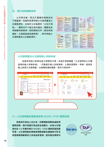 79113%u5e74%u5ea6%u6843%u5712%u6d88%u9632%u5e74%u58312024 Annual Report of Taoyuan Fire Department%u4e94%u3001%u63d0%u5347%u70ba%u6c11%u670d%u52d9%u6548%u7387%u706b%u707d%u767c%u751f%u5f8c%uff0c%u53d7%u707d%u6236%u91cd%u5efa%u7684%u904e%u7a0b%u5f80%u5f80%u5343%u982d%u842c%u7dd2%uff0c%u70ba%u4fbf%u5229%u6c11%u773e%u7533%u8fa6%u706b%u707d%u8b49%u660e%u66f8%u53ca%u706b%u707d%u8abf%u67e5%u8cc7%u6599%uff0c%u672c%u5c40%u65bc%u706b%u707d%u5f8c%u63d0%u4f9b%u300c%u706b%u707d%u6236%u9808%u77e5%u300d%uff0c%u8b93%u53d7%u707d%u6236%u4e86%u89e3%u707d%u5f8c%u7684%u6b0a%u5229%u3001%u7fa9%u52d9%u53ca%u5404%u9805%u76f8%u95dc%u7533%u8fa6%u4e8b%u9805%uff0c%u6aa2%u9644%u8b49%u660e%u6587%u4ef6%uff08%u5982%u6240%u6709%u7269%u6b0a%u72c0%u3001%u6c34%u96fb%u55ae%u6216%u91cc%u9577%u8b49%u660e%u7b49%uff09%uff0c%u5373%u53ef%u7533%u8fa6%u706b%u707d%u8b49%u660e%u66f8%u53ca%u706b%u707d%u8abf%u67e5%u8cc7%u6599%u3002%u70ba%u66f4%u6709%u6548%u6e1b%u5c11%u6c11%u773e%u5f80%u8fd4%u4e4b%u6642%u9593%u53ca%u4e0d%u4fbf%uff0c%u672c%u5c40%u65bc%u5b98%u7db2%u5efa%u7f6e%u300c%u706b%u707d%u8b49%u660e%u53ca%u706b%u707d%u8abf%u67e5%u8cc7%u6599%u7dda%u4e0a%u7533%u8fa6%u7cfb%u7d71%u300d%uff0c%u53ef%u76f4%u63a5%u65bc%u7dda%u4e0a%u7cfb%u7d71%u586b%u5beb%u3001%u4e0a%u50b3%u4f50%u8b49%u8cc7%u6599%u3001%u7533%u8fa6%u3001%u67e5%u8a62%u53ca%u7dda%u4e0a%u6838%u767c%u706b%u707d%u8b49%u660e%u66f8%uff0c%u4ee5%u9054%u7c21%u653f%u4fbf%u6c11%u670d%u52d9%uff0c%u63d0%u5347%u884c%u653f%u6548%u7387%u3002%u706b%u707d%u8b49%u660e%u66f8%u53ca%u706b%u707d%u8abf%u67e5%u7dda%u4e0a%u7533%u8fa6%u7cfb%u7d71%u516d%u3001%u706b%u707d%u8b49%u7269%u9451%u5b9a%u5be6%u9a57%u5ba4%u53d6%u5f97 ISO/IEC 17025 %u570b%u969b%u8a8d%u8b49%u5f35%u5584%u653f%u5e02%u9577%u81ea%u4e0a%u4efb%u4ee5%u4f86%uff0c%u6301%u7e8c%u63a8%u52d5%u76f8%u95dc%u5c40%u8655%u53d6%u5f97%u570b%u969b%u8a8d%u8b49%uff0c%u63d0%u5347%u6843%u5712%u884c%u653f%u54c1%u8cea%u5168%u9762%u512a%u5316%uff0c%u672c%u5c40%u706b%u707d%u8abf%u67e5%u79d1%u81ea 112 %u5e74%u8457%u624b%u9032%u884c ISO/IEC 17025 %u570b%u969b%u8a8d%u8b49%u524d%u7f6e%u4f5c%u696d%uff0c%u706b%u707d%u8b49%u7269%u9451%u5b9a%u5be6%u9a57%u5ba4%u7a4d%u6975%u898f%u5283%u53ca%u56b4%u8b39%u57f7%u884c%u7b26%u5408%u8a8d%u8b49%u76f8%u95dc%u898f%u7bc4%u8981%u6c42%u4e4b%u5404%u9805%u54c1%u8cea%u7ba1%u7406%u3001%u7a0b%u5e8f%u66f8%u53ca%u6a19%u6e96%u4f5c