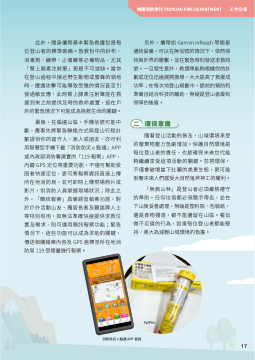 桃園消防季刊 TAOYUAN FIRE DEPARTMENT 工作分享 此外,隨身攜帶基本緊急救護包是每 位登山者的標準裝備。急救包中的紗布、 消毒劑、繃帶、止痛藥等必備物品,尤其 「腎上腺素注射筆」更是不可或缺。當你 在登山過程中接近野生動物或蜜蜂的領地 時,遭遇攻擊可能導致受傷的情況甚至引 發過敏反應,此時腎上腺素注射筆能在救 援到來之前提供及時的救命處置,這在戶 外的緊急情況下可能成為挽救生命的關鍵。 最後,在偏遠山區,手機信號可能中 斷,應事先將緊急聯絡方式與登山行程計 劃提供你的留守人、家人或朋友,亦可利 用智慧型手機下載「消防防災 e 點通」APP 或內政部消防署建置的「119 報案」APP, 內鍵 GPS 定位等重要功能,不僅可幫助受 困者快速定位,更可將報案資訊直接上傳 所在地消防局,並可即時上傳現場照片或 影片,供消防人員掌握現場狀況;除此之 外,「簡訊報案」具備語音報案功能,對 於戶外活動山友、獨居長者及聽語障人士 等特別有用,如無法準確快速提供求救位 置及需求,則可運用簡訊報案功能;緊急 情況下,這些功能可以成為求助的關鍵, 傳送相關報案內容及 GPS 座標至所在地消 防局 119 受理臺進行報案。 另外,攜帶如 Garmin inReach 等衛星 通訊設備,可以在無信號的情況下,依然保 持與外界的聯繫,並在緊急時刻發送求救訊 號。一旦發生意外,救援隊能夠根據你的計 劃或定位迅速展開搜尋,大大提高了救援成 功率;在每次地登山規劃中,提前的預防和 準備且結合科技的輔助,無疑是登山者最有 保障的後盾。 二 環保意識 隨著登山活動的普及,山域環境承受 的廢棄物壓力急劇增加。保護自然環境是 每位登山者的責任,也是確保未來世代能 夠繼續享受這項活動的關鍵。忽視環保, 不僅會破壞當下壯麗的美景生態,更可能 剝奪未來人們感受大自然鬼斧神工的權利。 「無痕山林」是登山者必須嚴格遵守 的準則。任何垃圾都必須隨手帶走,並在 下山後妥善處理,無論是塑料瓶、包裝紙, 還是食物殘渣,都不能遺留在山區。看似 微不足道的行為,如果每位登山者都能堅 持,將大為減輕山域環境的負擔。 EpiPen 消防防災 e 點通 APP 首頁 17