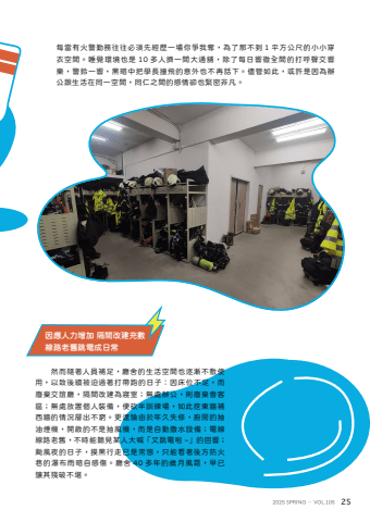 25%u6bcf%u7576%u6709%u706b%u8b66%u52e4%u52d9%u5f80%u5f80%u5fc5%u9808%u5148%u7d93%u6b77%u4e00%u5834%u4f60%u722d%u6211%u596a%uff0c%u70ba%u4e86%u90a3%u4e0d%u5230 1 %u5e73%u65b9%u516c%u5c3a%u7684%u5c0f%u5c0f%u7a7f%u8863%u7a7a%u9593%u3002%u7761%u89ba%u74b0%u5883%u4e5f%u662f 10 %u591a%u4eba%u64e0%u4e00%u9593%u5927%u901a%u8216%uff0c%u9664%u4e86%u6bcf%u65e5%u97ff%u5fb9%u5168%u9593%u7684%u6253%u547c%u8072%u4ea4%u97ff%u6a02%uff0c%u8b66%u9234%u4e00%u97ff%uff0c%u9ed1%u6697%u4e2d%u628a%u5b78%u9577%u649e%u98db%u7684%u610f%u5916%u4e5f%u4e0d%u518d%u8a71%u4e0b%u3002%u5118%u7ba1%u5982%u6b64%uff0c%u6216%u8a31%u662f%u56e0%u70ba%u8fa6%u516c%u8ddf%u751f%u6d3b%u5728%u540c%u4e00%u7a7a%u9593%uff0c%u540c%u4ec1%u4e4b%u9593%u7684%u611f%u60c5%u537b%u4e5f%u7dca%u5bc6%u975e%u51e1%u3002%u7136%u800c%u96a8%u8457%u4eba%u54e1%u88dc%u8db3%uff0c%u5ef3%u820d%u7684%u751f%u6d3b%u7a7a%u9593%u4e5f%u9010%u6f38%u4e0d%u6577%u4f7f%u7528%uff0c%u4ee5%u81f4%u5f8c%u7e8c%u88ab%u8feb%u904e%u8457%u6253%u5e36%u8dd1%u7684%u65e5%u5b50%uff1a%u56e0%u5e8a%u4f4d%u4e0d%u8db3%uff0c%u800c%u5ee2%u68c4%u4ea4%u8abc%u5ef3%uff0c%u9694%u9593%u6539%u5efa%u70ba%u5be2%u5ba4%uff1b%u7121%u8655%u8fa6%u516c%uff0c%u5247%u5ee2%u68c4%u6703%u5ba2%u5340%uff1b%u7121%u8655%u653e%u7f6e%u500b%u4eba%u88dd%u5099%uff0c%u4fbf%u780d%u534a%u8a13%u7df4%u5834%uff0c%u5982%u6b64%u6316%u6771%u7246%u88dc%u897f%u7246%u7684%u60c5%u6cc1%u5c64%u51fa%u4e0d%u7aae%u3002%u66f4%u9051%u8ad6%u7531%u65bc%u5e74%u4e45%u5931%u4fee%uff0c%u5eda%u623f%u7684%u62bd%u6cb9%u7159%u6a5f%uff0c%u958b%u555f%u7684%u4e0d%u662f%u62bd%u98a8%u6a5f%uff0c%u800c%u662f%u81ea%u52d5%u6492%u6c34%u8a2d%u5099%uff1b%u96fb%u7dda%u7dda%u8def%u8001%u820a%uff0c%u4e0d%u6642%u80fd%u807d%u898b%u67d0%u4eba%u5927%u558a%u300c%u53c8%u8df3%u96fb%u5566 ~%u300d%u7684%u56de%u97ff%uff1b%u98b1%u98a8%u591c%u7684%u65e5%u5b50%uff0c%u6478%u9ed1%u884c%u8d70%u5df2%u662f%u5e38%u614b%uff0c%u53ea%u80fd%u770b%u8457%u5f8c%u65b9%u9632%u706b%u5df7%u7684%u7011%u5e03%u96e8%u6697%u81ea%u611f%u50b7%u3002%u5ef3%u820d 40 %u591a%u5e74%u7684%u6b72%u6708%u98a8%u971c%uff0c%u65e9%u5df2%u8b93%u5176%u6b98%u7834%u4e0d%u582a%u3002%u56e0%u61c9%u4eba%u529b%u589e%u52a0 %u9694%u9593%u6539%u5efa%u5145%u6578%u7dda%u8def%u8001%u820a%u8df3%u96fb%u6210%u65e5%u5e38