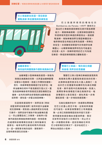 6 %u8a13%u7df4%u7d00%u8981 / %u89e3%u9396%u5404%u985e%u8eca%u798d%u6551%u63f4%u8b0e%u5718 %u5fc5%u53bb%u8461%u8404%u7259%u91cd%u578b%u6551%u63f4%u8a13%u7df4%u6cb9%u7f50%u8eca%u4e8b%u6545%uff5e %u9ad8%u6548%u5354%u540c%u8207%u8b39%u614e%u64cd%u4f5c%u61c9%u5c0d%u9ad8%u98a8%u96aa%u4efb%u52d9%u5df4%u58eb%u8eca%u798d%u4e8b%u6545%u6551%u63f4%uff5e%u73fe%u5f79%u8eca%u6b3e%u5be6%u6230%u6f14%u7df4 %u964d%u4f4e%u5be6%u52d9%u8207%u8a13%u7df4%u843d%u5dee%u96d9%u5c64%u5df4%u58eb%u8eca%u798d%uff5e %u614e%u9632%u9ad8%u4f4d%u5074%u7ffb%u8207%u5d29%u584c %u9802%u6607%u6280%u8853%u662f%u95dc%u9375%u6cb9%u7f50%u8eca%u58d3%u5c0f%u578b%u8eca%u8eca%u798d%u6551%u63f4%u662f%u4e00%u9805%u6975%u70ba%u8907%u96dc%u4e14%u9ad8%u98a8%u96aa%u7684%u4efb%u52d9%uff0c%u5c24%u5176%u7576%u6cb9%u7f50%u8eca%u7ffb%u8986%u4e26%u58d3%u4f4f%u5c0f%u578b%u8eca%u6642%uff0c%u6551%u63f4%u5de5%u4f5c%u9700%u7279%u5225%u8b39%u614e%u3002%u9996%u5148%uff0c%u6551%u63f4%u968a%u6703%u5c0d%u73fe%u5834%u9032%u884c%u5b89%u5168%u8a55%u4f30%uff0c%u78ba%u4fdd%u6cb9%u7f50%u8eca%u7684%u71c3%u6599%u4e0d%u6703%u6d29%u6f0f%u6216%u5f15%u767c%u706b%u707d%u3002%u91cd%u578b%u6551%u63f4%u8eca%u8f1b%u6703%u4f7f%u7528%u588a%u584a%u6216%u652f%u6490%u8a2d%u5099%u7a69%u5b9a%u6cb9%u7f50%u8eca%uff0c%u4e26%u5229%u7528%u9802%u6607%u6280%u8853%u6162%u6162%u5c07%u6cb9%u7f50%u8eca%u62ac%u8d77%u6216%u79fb%u958b%uff0c%u907f%u514d%u9032%u4e00%u6b65%u58d3%u8feb%u88ab%u56f0%u8eca%u8f1b%u3002%u5728%u9019%u500b%u6551%u63f4%u904e%u7a0b%u4e2d%uff0c%u9802%u6607%u6280%u8853%uff08%u4f8b%u5982%u6db2%u58d3%u9802%u6607%u6216%u6c23%u52d5%u9802%u6607%uff09%u88ab%u7528%u4f86%u63d0%u5347%u6cb9%u7f50%u8eca%u6216%u652f%u6490%u8eca%u8f1b%uff0c%u4f7f%u6551%u63f4%u4eba%u54e1%u80fd%u5920%u66f4%u5b89%u5168%u5730%u9032%u884c%u64cd%u4f5c%u3002%u9802%u6607%u6280%u8853%u53ef%u5e6b%u52a9%u5e73%u8861%u6cb9%u7f50%u8eca%u7684%u91cd%u5fc3%uff0c%u9632%u6b62%u7ffb%u8986%u9020%u6210%u4e8c%u6b21%u50b7%u5bb3%uff0c%u4e26%u78ba%u4fdd%u5c0f%u578b%u8eca%u5167%u88ab%u56f0%u7684%u4e58%u5ba2%u80fd%u5920%u9806%u5229%u812b%u56f0%u3002%u5c0d%u53d7%u56f0%u8005%u7684%u8655%u7406%u5247%u4f9d%u8cf4%u5c08%u696d%u7684%u6551%u63f4%u5de5%u5177%u548c%u91ab%u7642%u652f%u63f4%u968a%u4f0d%uff0c%u78ba%u4fdd%u4ed6%u5011%u5728%u6700%u77ed%u6642%u9593%u5167%u5f97%u5230%u6551%u6cbb%u3002%u9019%u4e00%u904e%u7a0b%u8981%u6c42%u9ad8%u6548%u5354%u540c%u3001%u8b39%u614e%u64cd%u4f5c%uff0c%u4e26%u96a8%u6642%u61c9%u5c0d%u6f5b%u5728%u7684%u5371%u96aa%u3002%u5df4%u58eb%u6551%u63f4%u6240%u4f7f%u7528%u7684%u5834%u5730%u4f4d%u65bcBombeiros de Penela%uff0cHRPT %u6559%u5b98%u5df4%u58eb%u6307%u51fa%u5df4%u58eb%u8eca%u798d%u6551%u63f4%u8a13%u7df4%u65e8%u5728%u63d0%u5347%u7dca%u6025%u61c9%u8b8a%u80fd%u529b%uff0c%u6a21%u64ec%u8eca%u798d%u73fe%u5834%uff0c%u4e3b%u8981%u8a13%u7df4%u6551%u63f4%u968a%u4f0d%u5feb%u901f%u5c07%u88ab%u593e%u56f0%u65bc%u8eca%u5e95%u7684%u4e58%u5ba2%u6551%u51fa%u3002%u901a%u904e%u5be6%u6230%u6f14%u7df4%uff0c%u589e%u5f37%u8eca%u8f1b%u9802%u6607%u53ca%u7a69%u56fa%u8eca%u9ad4%u6280%u8853%uff0c%u78ba%u4fdd%u4e8b%u6545%u767c%u751f%u6642%u80fd%u8fc5%u901f%u6709%u6548%u8655%u7406%uff0c%u4fdd%u969c%u751f%u547d%u5b89%u5168%u3002%u672c%u9805%u8b93%u53d7%u8a13%u5b78%u54e1%u53ef%u65bc%u5feb%u901f%u8a55%u4f30%u8eca%u8f1b%u91cd%u5fc3%uff0c%u4ee5%u77ad%u89e3%u8eca%u8f1b%u9802%u6607%u7279%u6027%u53ca%u53ef%u80fd%u7522%u751f%u7684%u5371%u5bb3%u3002%u6b64%u5916%uff0c%u8a13%u7df4%u6240%u4f7f%u7528%u7684%u5df4%u58eb%u5747%u70ba%u73fe%u5f79%u8eca%u6b3e%uff0c%u964d%u4f4e%u8a13%u7df4%u8207%u5be6%u52d9%u4e4b%u9ad4%u9a57%u843d%u5dee%u3002%u96d9%u5c64%u5df4%u58eb%u8207%u5c0f%u578b%u8eca%u7684%u8eca%u798d%u6551%u63f4%u662f%u5177%u6709%u9ad8%u98a8%u96aa%u53ca%u9700%u5927%u91cf%u91cd%u578b%u6551%u63f4%u6280%u8853%u7684%u4efb%u52d9%u3002%u6b64%u985e%u4e8b%u6545%u901a%u5e38%u6703%u6d89%u53ca%u5927%u91cf%u4eba%u54e1%u50b7%u4ea1%uff0c%u4e14%u7531%u65bc%u5df4%u58eb%u7684%u91cd%u91cf%u548c%u7d50%u69cb%u7279%u6027%u53ca%u9ad8%u4f4d%u5074%u7ffb%u5371%u5bb3%uff0c%u64cd%u4f5c%u904e%u7a0b%u4e2d%u7684%u98a8%u96aa%u6975%u9ad8%u3002%u6551%u63f4%u4eba%u54e1%u9700%u5c0d%u4e8b%u6545%u73fe%u5834%u9032%u884c%u9ad8%u4f4d%u98a8%u96aa%u8a55%u4f30%uff0c%u78ba%u8a8d%u96d9%u5c64%u5df4%u58eb%u662f%u5426%u7a69%u5b9a%uff0c%u907f%u514d%u5176%u9032%u4e00%u6b65%u5074%u7ffb%u6216%u5d29%u584c%uff0c%u9032%u4e00%u6b65%u589e%u52a0%u6551%u63f4%u56f0%u96e3%u3002%u5728%u9ad8%u4f4d%u98a8%u96aa%u8a55%u4f30%u4e2d%uff0c%u6551%u63f4%u968a%u4f0d%u9700%u8981%u78ba%u5b9a%u5df4%u58eb%u7684%u91cd%u5fc3%u662f%u5426%u5e73%u8861%uff0c%u4e26%u9810%u6e2c%u5176%u5074%u7ffb%u7684%u53ef%u80fd%u6027%u3002%u5982%u679c%u767c%u73fe%u96d9%u5c64%u5df4%u58eb%u6709%u5074%u7ffb%u98a8%u96aa%uff0c%u5fc5%u9808%u7acb%u523b%u555f%u52d5%u7a69%u56fa%u6280%u8853%u4f86%u9032%u884c%u652f%u6490%uff0c%u4f7f%u7528%u91cd%u578b%u6551%u63f4%u8a2d%u5099%u5982%u6db2%u58d3%u9802%u6607%u5668%u3001%u7a69%u5b9a%u652f%u67b6%u7b49%u4f86%u52a0%u5f37%u5df4%u58eb%u7684%u7a69%u5b9a%u6027%uff0c%u9632%u6b62%u5df4%u58eb%u9032%u4e00%u6b65%u7ffb%u8986%u6216%u6ed1%u52d5%u3002%u9019%u4e9b%u8a2d%u5099%u80fd%u5728%u4fdd%u6301%u5df4%u58eb%u76f8%u5c0d%u7a69%u5b9a%u7684%u60c5%u6cc1%u4e0b%uff0c%u9010%u6b65%u62ac%u8d77%u5df4%u58eb%uff0c%u91cb%u653e%u51fa%u88ab%u56f0%u7684%u5c0f%u578b%u8eca%u3002