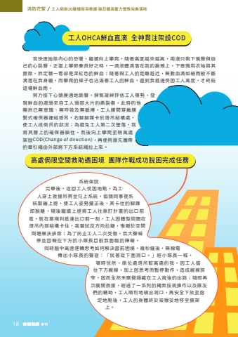 %u6211%u5feb%u901f%u62cb%u9664%u5167%u5fc3%u7684%u6050%u61fc%uff0c%u7e7c%u7e8c%u5411%u4e0a%u6500%u722c%uff0c%u96a8%u8457%u9ad8%u5ea6%u8d8a%u4f86%u8d8a%u9ad8%uff0c%u5468%u908a%u53ea%u5269%u4e0b%u98a8%u8072%u8207%u81ea%u5df1%u7684%u5fc3%u8df3%u8072%uff0c%u6b63%u7576%u4e0a%u6500%u7bc0%u594f%u826f%u597d%u4e4b%u6642%uff0c%u4e00%u6ef4%u6db2%u9ad4%u6ef4%u843d%u5728%u6211%u7684%u81c9%u9830%u4e0a%uff0c%u4e0b%u610f%u8b58%u7528%u8863%u8896%u5c07%u5176%u64e6%u9664%uff0c%u7136%u5b9a%u775b%u4e00%u770b%u537b%u662f%u6df1%u7d05%u8272%u7684%u9bae%u8840%uff1b%u96a8%u8457%u8207%u5de5%u4eba%u7684%u8ddd%u96e2%u8d8a%u8fd1%uff0c%u7121%u6578%u8840%u6ef4%u5982%u7d30%u96e8%u822c%u4e0d%u65b7%u6ef4%u843d%u5728%u6211%u8eab%u8ec0%uff0c%u800c%u6500%u722c%u7684%u68af%u5b50%u4e5f%u6cbe%u6eff%u8457%u5de5%u4eba%u7684%u9bae%u8840%uff0c%u76f4%u5230%u6211%u62b5%u9054%u53d7%u56f0%u5de5%u4eba%u9ad8%u5ea6%uff0c%u624d%u7d42%u7d50%u9019%u5834%u9bae%u8840%u96e8%u3002%u52aa%u529b%u6309%u4e0b%u5fc3%u982d%u64b2%u901a%u5730%u8df3%u8072%uff0c%u5c4f%u6c23%u51dd%u795e%u8a55%u4f30%u5de5%u4eba%u50b7%u52e2%uff0c%u767c%u73fe%u9bae%u8840%u7684%u6e90%u982d%u4f86%u81ea%u5de5%u4eba%u982d%u90e8%u5927%u7247%u7684%u6495%u88c2%u50b7%uff0c%u6b64%u6642%u7684%u4ed6%u986f%u7136%u5df2%u7121%u610f%u8b58%u3001%u7121%u547c%u5438%u53ca%u7121%u8108%u640f%uff0c%u5de5%u4eba%u8170%u9593%u7a7f%u6234%u8170%u7e6b%u5f0f%u78ba%u4fdd%u5668%u9023%u7d50%u5854%u540a%uff0c%u53f3%u8173%u8173%u8e1d%u5361%u65bc%u5854%u540a%u7d50%u69cb%u8655%uff0c%u4f7f%u5de5%u4eba%u6210%u5012%u540a%u7684%u72c0%u6cc1%uff1b%u70ba%u907f%u514d%u5de5%u4eba%u7b2c%u4e8c%u6b21%u589c%u843d%uff0c%u6211%u5c07%u5176%u8170%u4e0a%u7684%u78ba%u4fdd%u5668%u9396%u4f4f%uff0c%u800c%u5f8c%u5411%u4e0a%u6500%u722c%u81f3%u7a0d%u9ad8%u8655%u67b6%u8a2dCOD(Change of direction)%uff0c%u518d%u4f7f%u7528%u539f%u5148%u651c%u5e36%u7684%u727d%u5f15%u7e69%u7531%u5916%u90e8%u5c07%u4e0b%u65b9%u7cfb%u7d71%u7e69%u62c9%u4e0a%u4f86%u3002 %u7cfb%u7d71%u67b6%u8a2d%u5b8c%u7562%u5f8c%uff0c%u8fd4%u56de%u5de5%u4eba%u53d7%u56f0%u5730%u9ede%uff0c%u70ba%u5de5%u4eba%u7a7f%u4e0a%u6551%u63f4%u540a%u5e36%u4e26%u52fe%u4e0a%u7cfb%u7d71%uff0c%u5354%u8acb%u540c%u4e8b%u4f7f%u7cfb%u7d71%u7dca%u7e43%u4e0a%u63d0%uff0c%u4f7f%u5de5%u4eba%u59ff%u52e2%u64fa%u6b63%u5f8c%uff0c%u5176%u5361%u4f4f%u7684%u8173%u8e1d%u5373%u812b%u96e2%uff0c%u96a8%u5f8c%u7e7c%u7e8c%u4e0a%u63d0%u5c07%u5de5%u4eba%u5f80%u539f%u8a02%u8a08%u756b%u7684%u51fa%u53e3%u524d%u9032%uff0c%u5c31%u5728%u8981%u9806%u5229%u62b5%u9054%u51fa%u53e3%u524d%u4e00%u523b%uff0c%u5de5%u4eba%u56e0%u9ad4%u578b%u554f%u984c%u5728%u5854%u540a%u5167%u90e8%u7d50%u69cb%u5361%u4f4f%uff0c%u6211%u5617%u8a66%u53cd%u65b9%u5411%u62c9%u96e2%uff0c%u60df%u7919%u65bc%u7a7a%u9593%u554f%u984c%u7121%u6cd5%u6392%u9664%uff1b%u70ba%u4e86%u9632%u6b62%u5de5%u4eba%u4e8c%u6b21%u53d7%u50b7%uff0c%u6211%u5927%u8072%u558a%u505c%u4e26%u56de%u5831%u5728%u4e0b%u65b9%u7684%u5c0f%u968a%u9577%u76ee%u524d%u6211%u9762%u81e8%u7684%u969c%u7919%uff0c%u540c%u6642%u8166%u4e2d%u9ad8%u901f%u904b%u8f49%u601d%u8003%u5982%u4f55%u89e3%u6c7a%u7576%u524d%u56f0%u5883%uff0c%u5e7e%u79d2%u9418%u5f8c%uff0c%u7121%u7dda%u96fb%u50b3%u51fa%u5c0f%u968a%u9577%u7684%u8072%u97f3%uff1a%u300c%u8a66%u8457%u5f9e%u4e0b%u9762%u6d1e%u53e3%u3002%u300d%u7d93%u5c0f%u968a%u9577%u4e00%u558a%uff0c%u9813%u6642%u604d%u7136%uff0c%u539f%u4f4d%u8655%u5854%u540a%u8f03%u9ad8%u8655%u7684%u6211%uff0c%u56e0%u5de5%u4eba%u64cb%u4f4f%u4e0b%u65b9%u8996%u7dda%uff0c%u52a0%u4e0a%u56e0%u601d%u8003%u800c%u66ab%u505c%u52d5%u4f5c%uff0c%u9020%u6210%u8996%u7dda%u72f9%u7a84%uff0c%u56e0%u800c%u5168%u7136%u672a%u5bdf%u89ba%u96b1%u85cf%u5728%u5de5%u4eba%u80cc%u5f8c%u7684%u51fa%u8def%uff1b%u96a8%u5373%u518d%u6b21%u5c55%u958b%u6551%u63f4%uff0c%u7d93%u904e%u4e86%u4e00%u7cfb%u5217%u7684%u7e69%u7d22%u6280%u8853%u64cd%u4f5c%u4ee5%u53ca%u968a%u53cb%u5011%u7684%u8f14%u52a9%uff0c%u5de5%u4eba%u9806%u5229%u5730%u7e5e%u51fa%u6d1e%u53e3%uff0c%u518d%u5b89%u5168%u4e0b%u653e%u81f3%u6307%u5b9a%u5730%u9ede%u5f8c%uff0c%u5de5%u4eba%u7684%u8eab%u9ad4%u7d42%u65bc%u88ab%u7a69%u59a5%u5730%u79fb%u81f3%u64d4%u67b6%u4e0a%u300218 %u6d88%u9632%u82b1%u7d6e %u5de5%u4eba%u5012%u639b%ufffd%ufffd%u5c64%u6a13%u5854%u540a%u6551%u63f4 %u5f37%u5fcd%u61fc%u9ad8%u596e%u529b%u71df%u6551%u5b8c%u7f8e%u843d%u5730